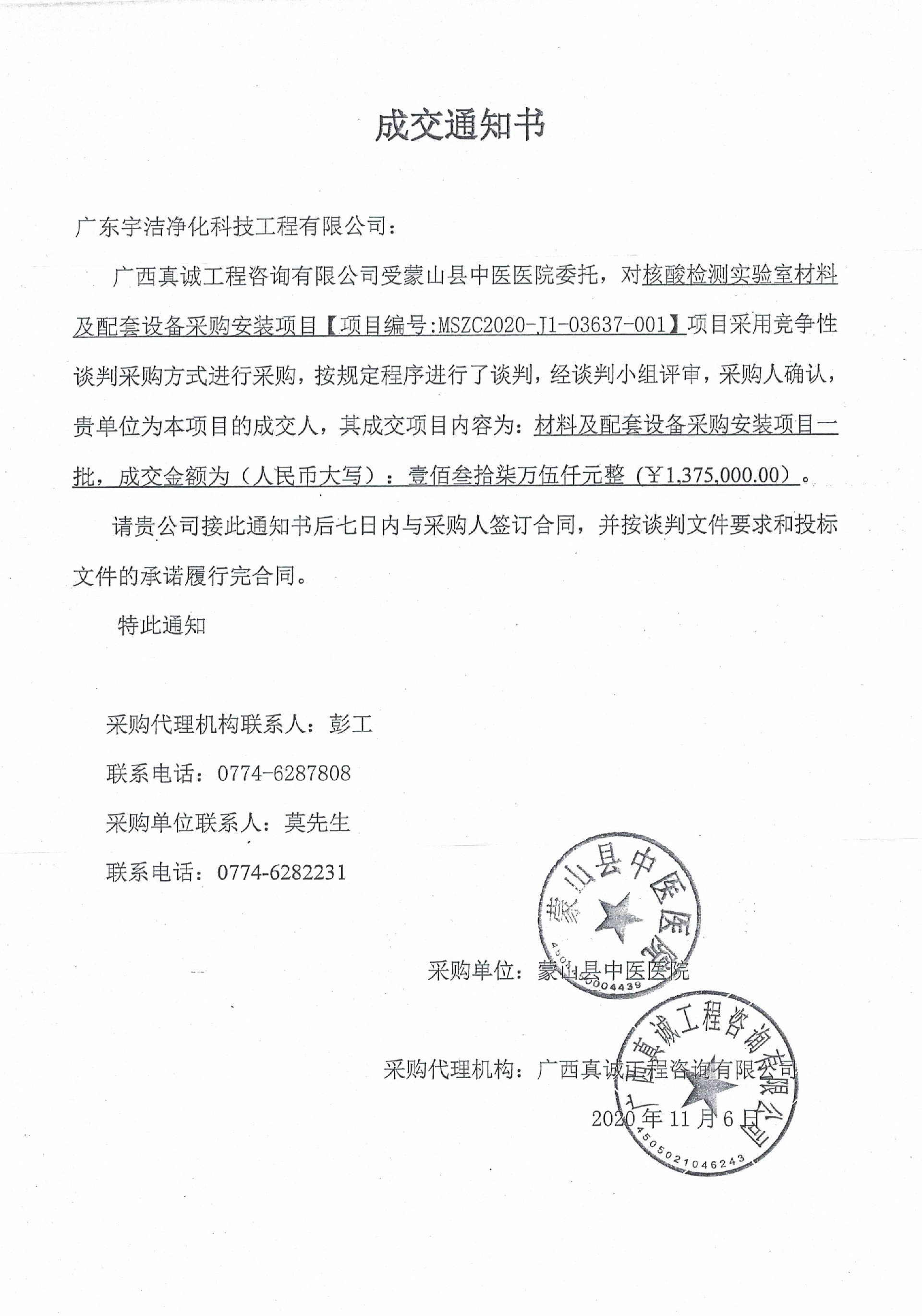 中標(biāo)通知書
